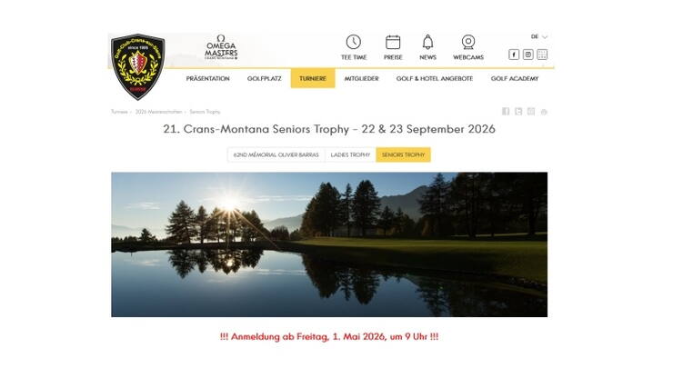 Alle Details auf der Homepage des GC Crans (Turniere - 2026 Meisterschaften - Seniors Trophy):